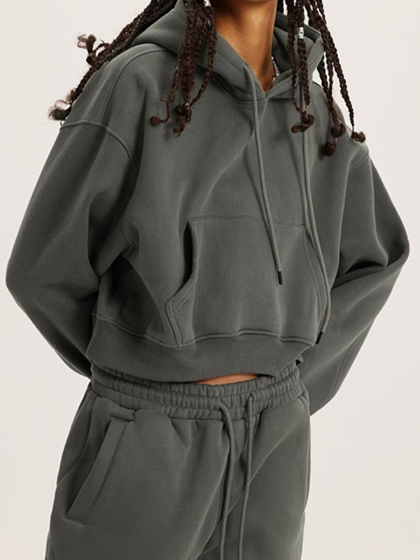 Solid Color Kangaroo Pocket Short Oversized Hoodie