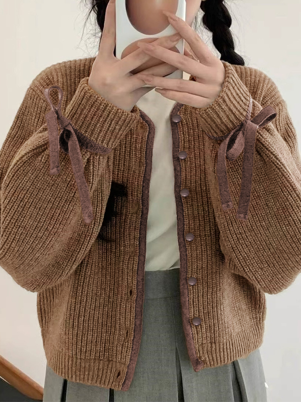 Solid Breasted Slim Long Sleeve Knit