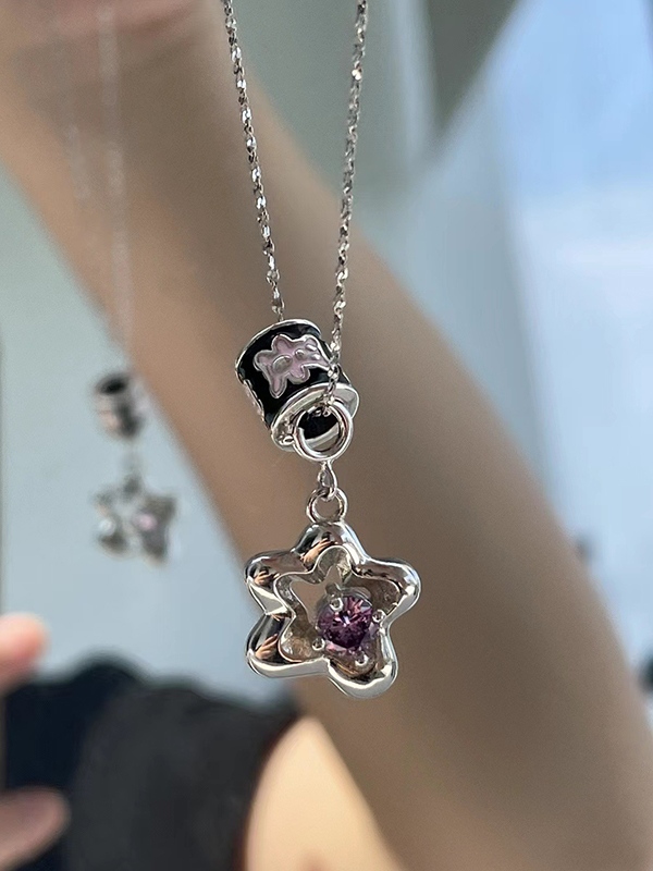 Silver Hollow Out Flower Charm Necklace