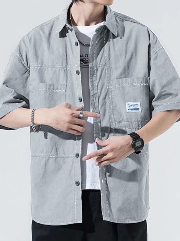 Men’s Short Sleeve Buttoned Casual Cargo Shirt