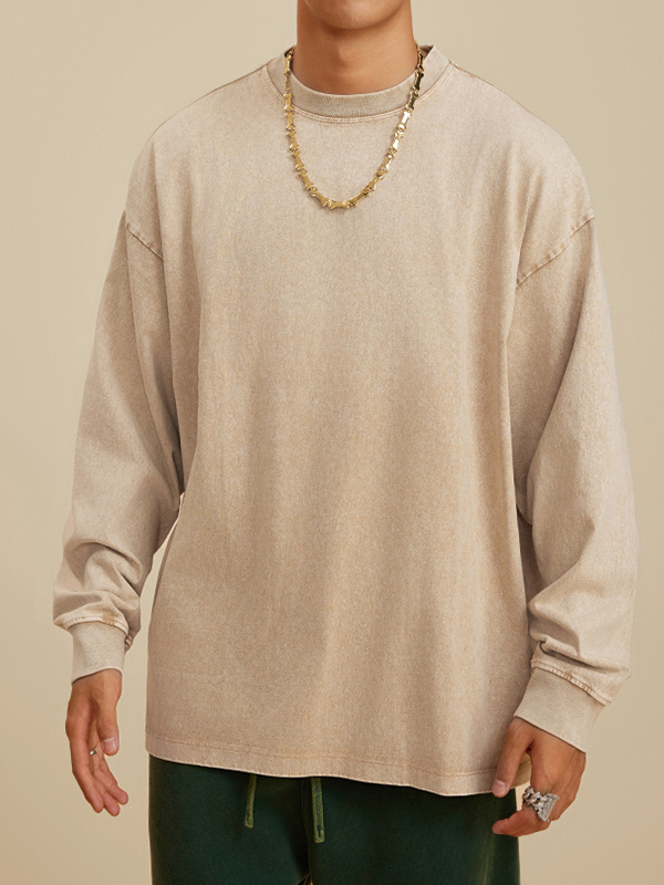 Men’ Vintage Washed Solid Color Long Sleeve Tee