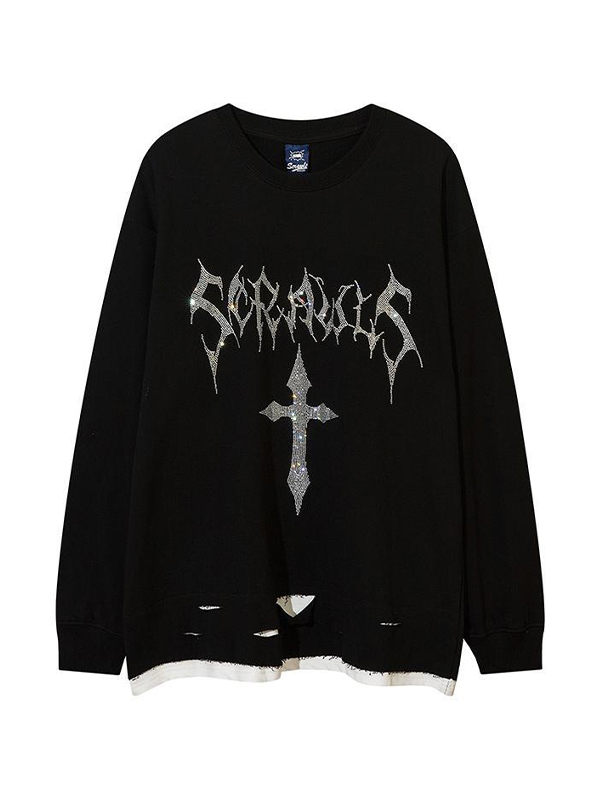 Rhinestone Cross Hole Sweatshirt
