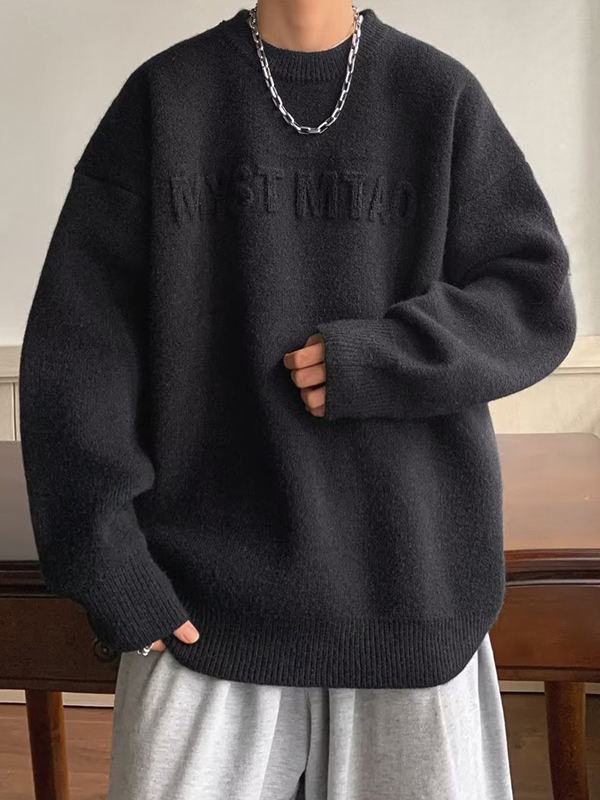 Men’s Three Dimensional Letter Jacquard Sweater
