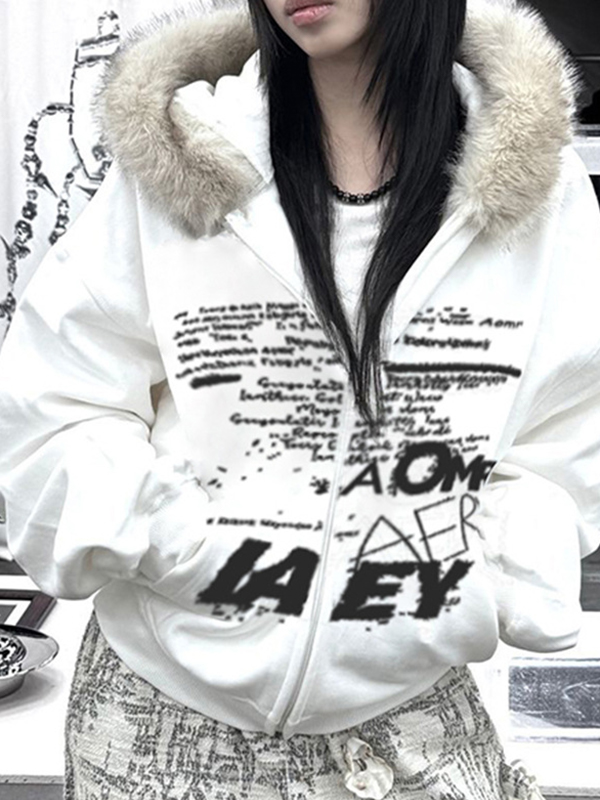 Men’s Hip Pop Print Full Zipper Oversized Hoodie