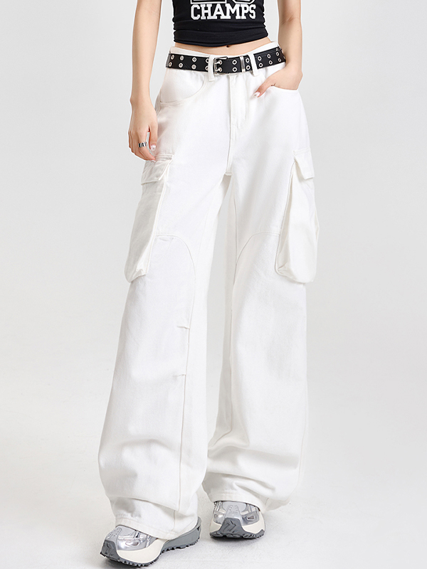 Top-stitching Buckle Design Removable Wide Leg Pants