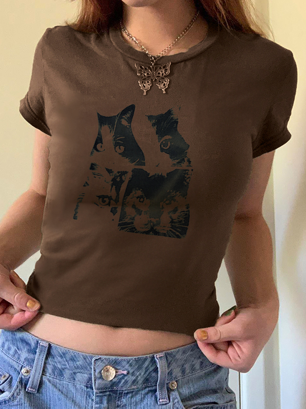 Vintage Cat Hand Printed Tee