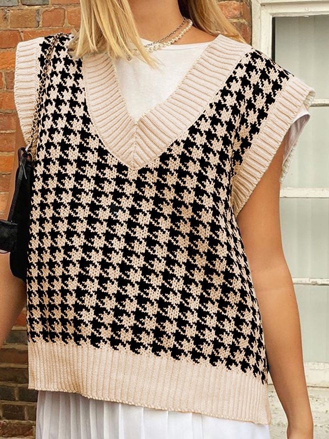 V Neck Houndstooth Sweater Vest