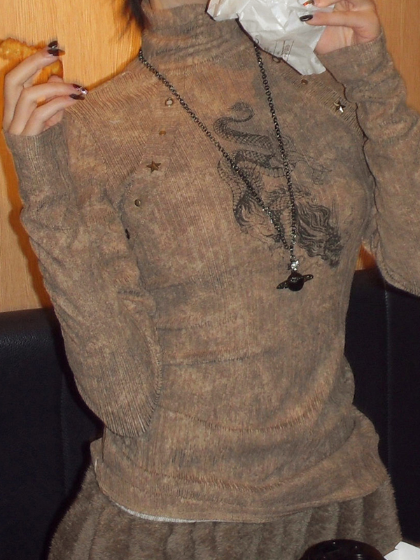 Tribal Dragon Print Studded Long Sleeve Knit