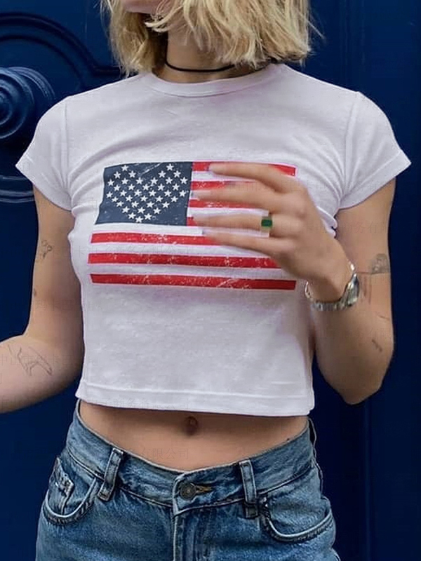 Flag Print Crew Neck Short Sleeve Tee