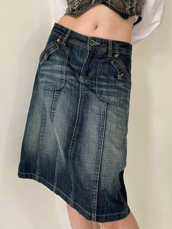 Distressed Washed Slim Straight A Line Denim skirt