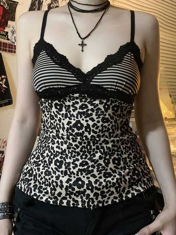 Contrast Color V-Neck Shows Slimming Breast Shape Cami Top