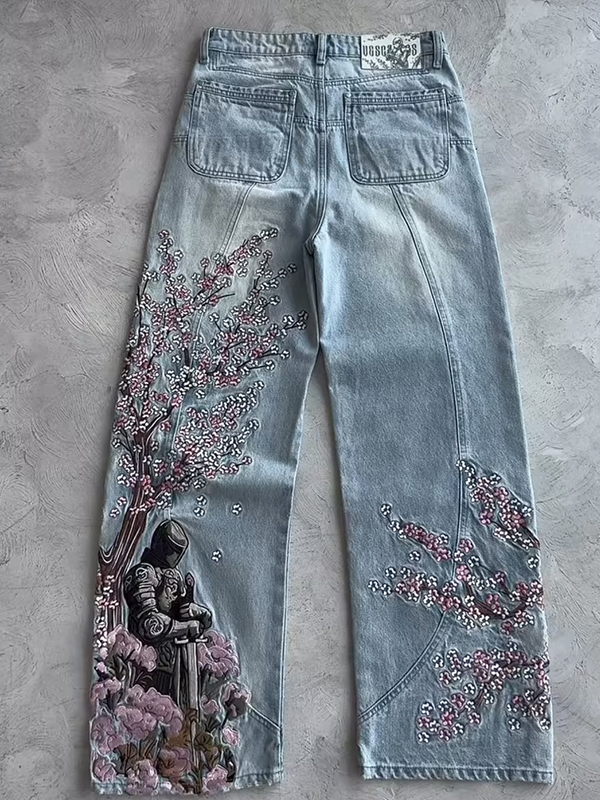 Retro Plum Blossom Embroidery Boyfriend Jeans