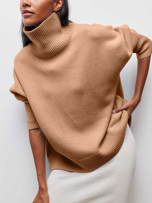 Solid High Neck Loose Sweater