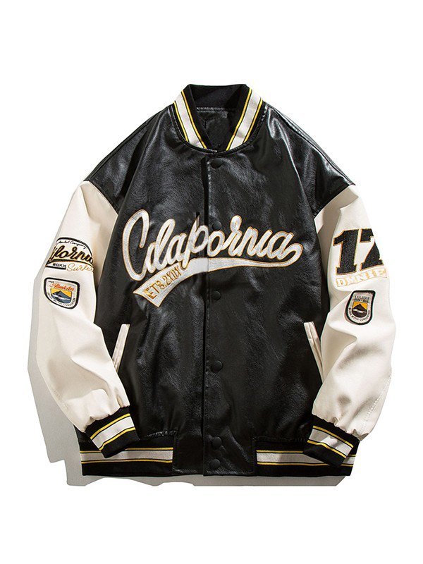 Men’s Embroidered Pu Leather Varsity Jacket