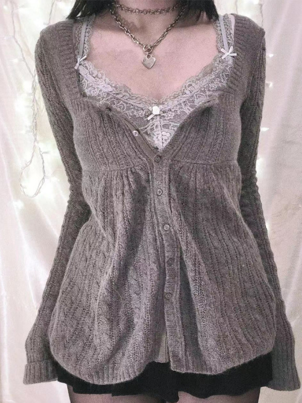 Sweet Style Lace Stitching Cardigan
