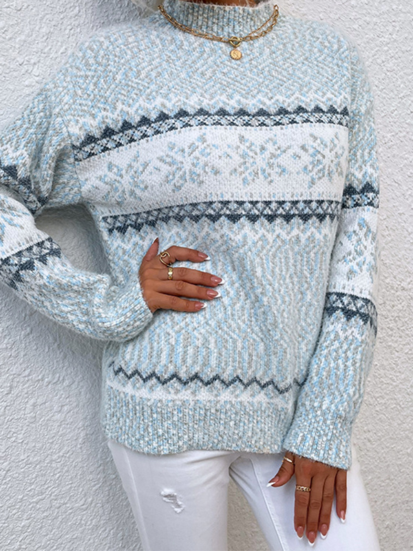 Snowflake Jacquard Mock Neck Sweater