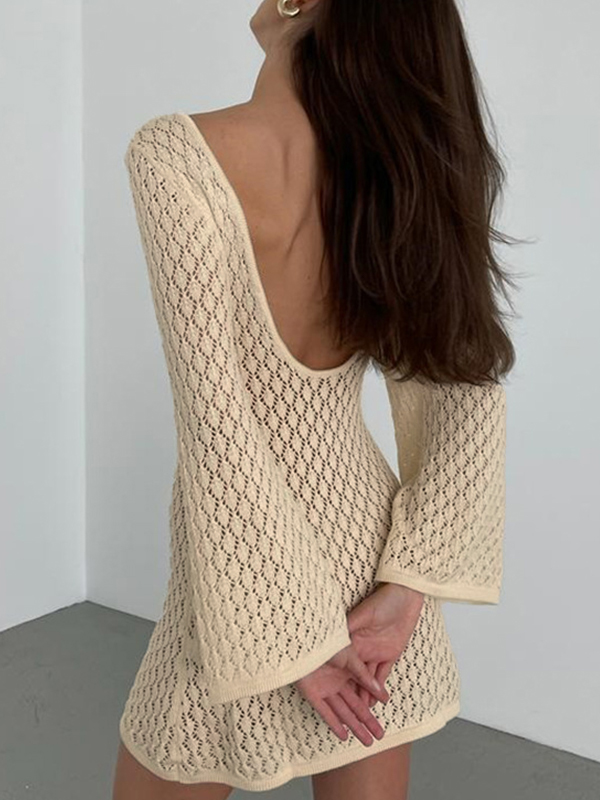 Solid Cutout Backless Knit Mini Dress