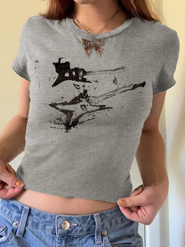 Vintage Brown Guitar Print Short Sleeve Tee