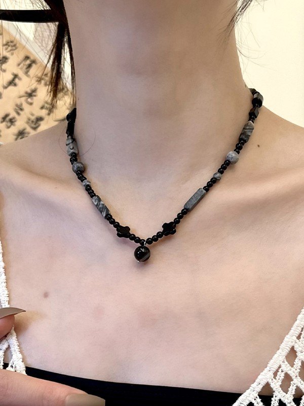 Vintage Beads Stone Charm Necklace