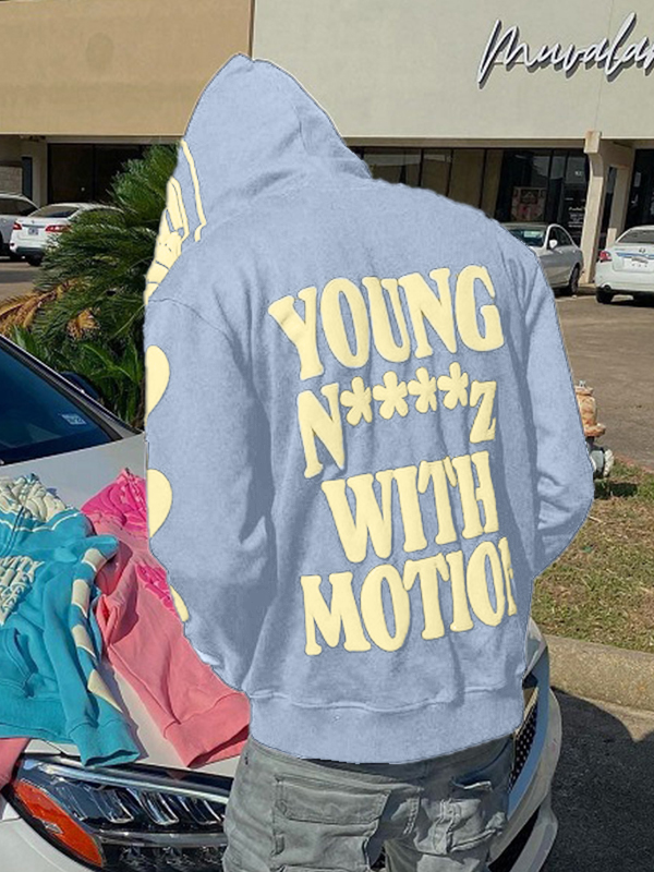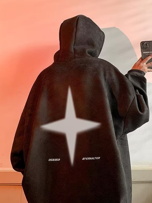 Men’s Hip Pop Letter Heart Print Oversized Hoodie