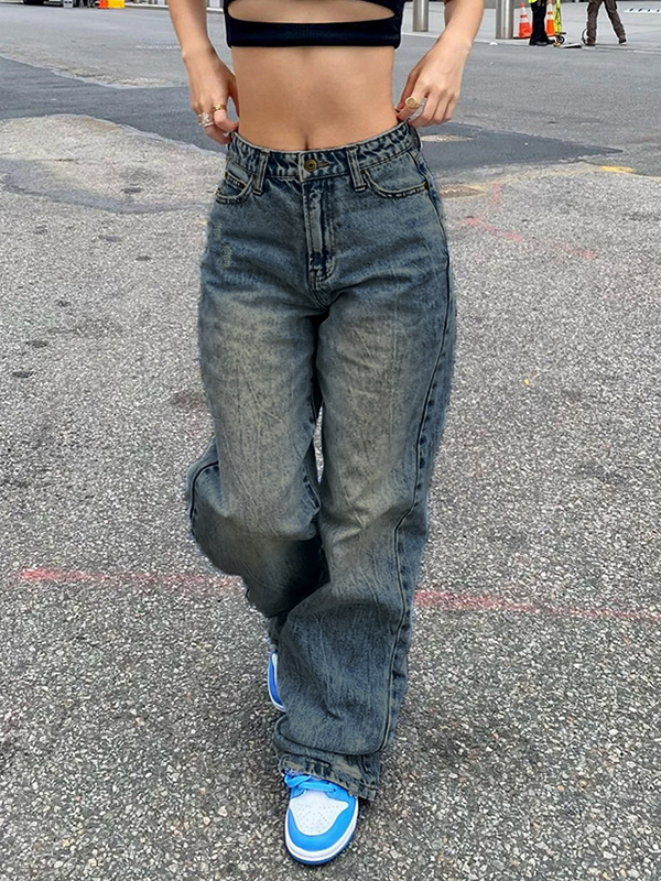 Basic Wash Straight Leg Boyfriend Jeans