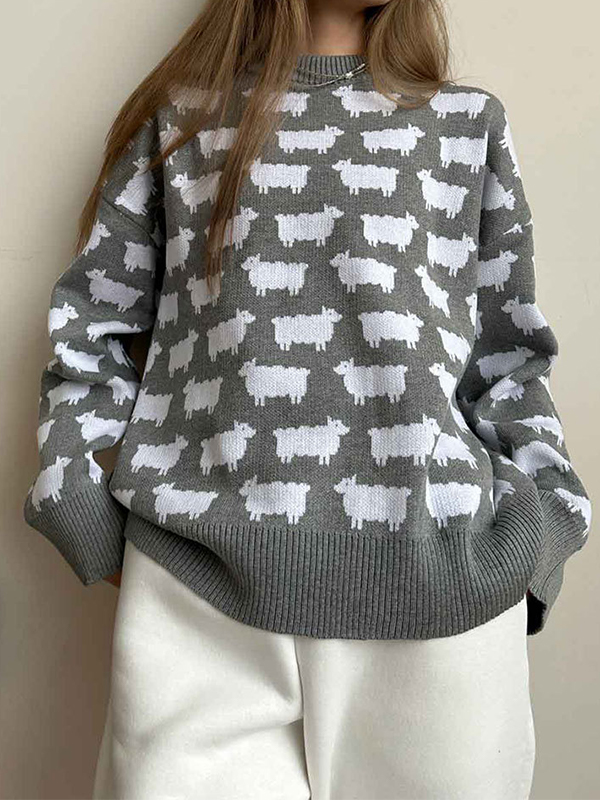 American Retro Kitten Round Neck Sweaters