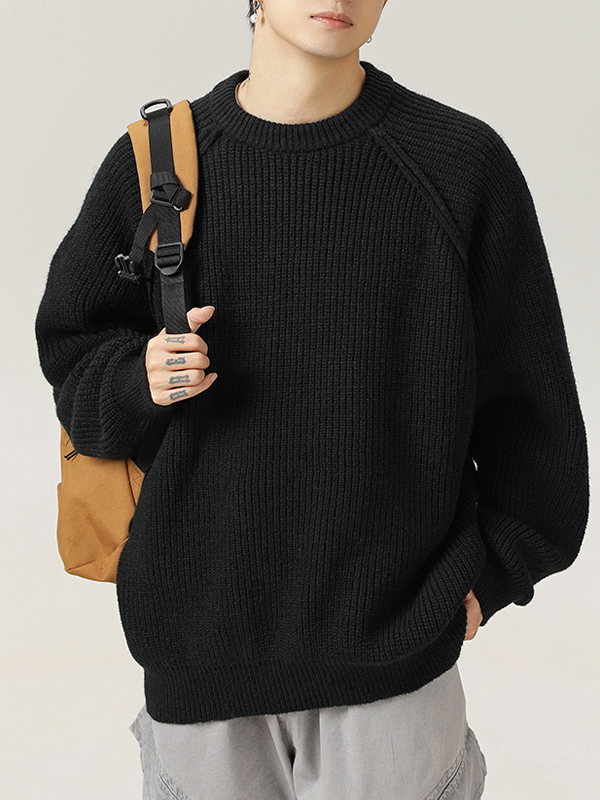 Three-Dimensional Shoulder Line Design Round Neck Sweater