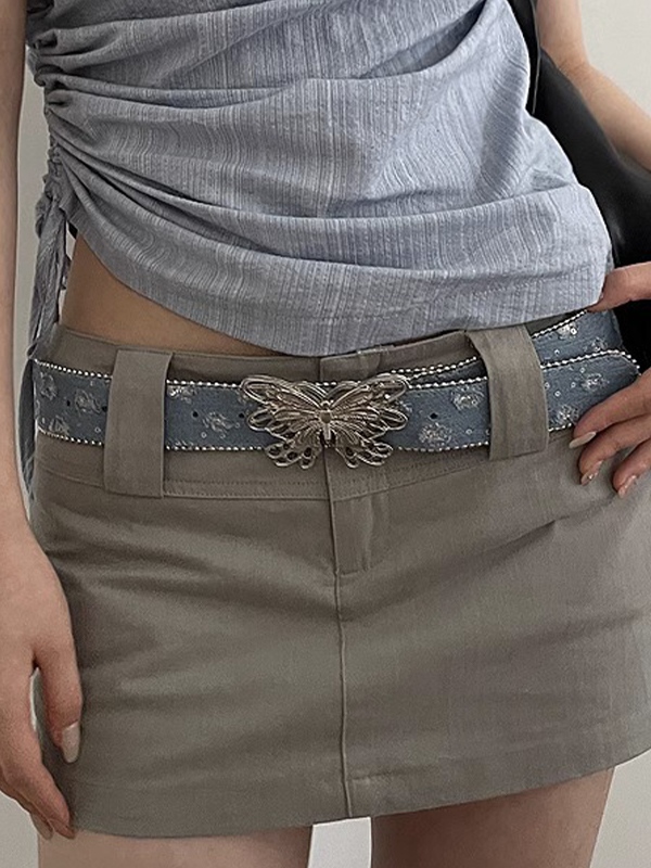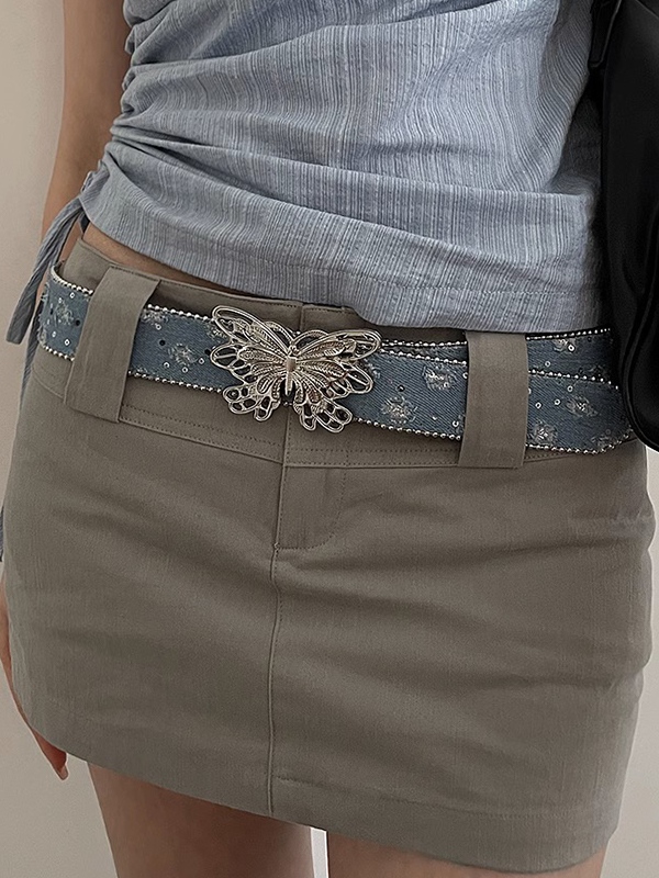 Canvas Sequin Embellished Butterfly Buckle Belt