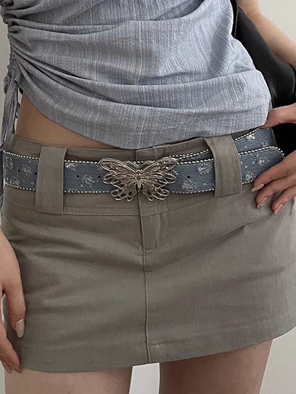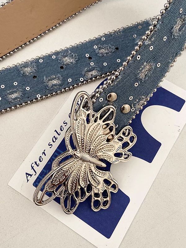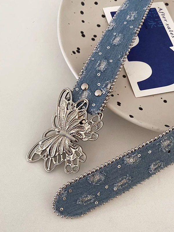 Denim Sequin Embellished Butterfly Buckle Belt