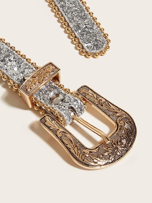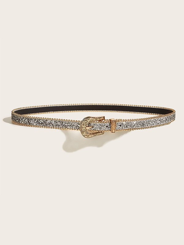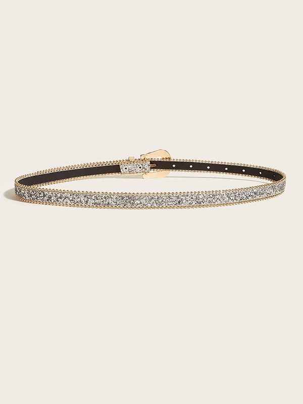 Sequin Carved Buckle Skinny Belt