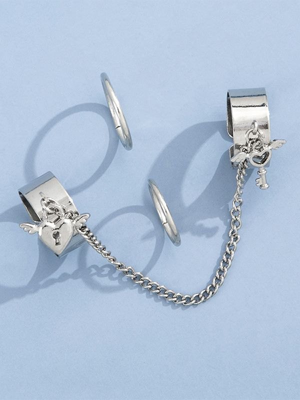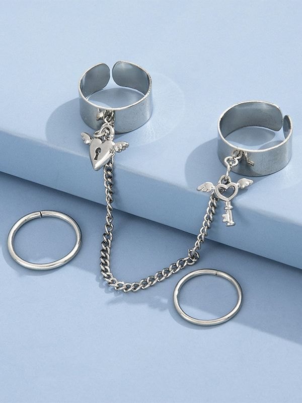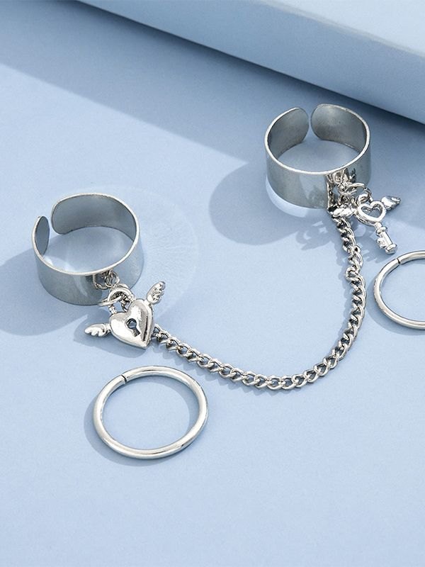 Heart Key Pendant Cuff Ring Set quantity