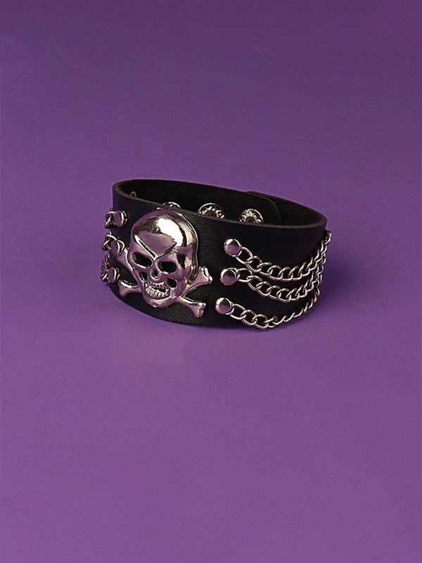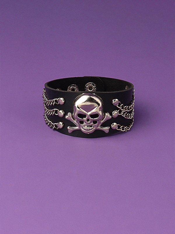 Chain Embellish Skull Chunky Pu Leather Bracelet