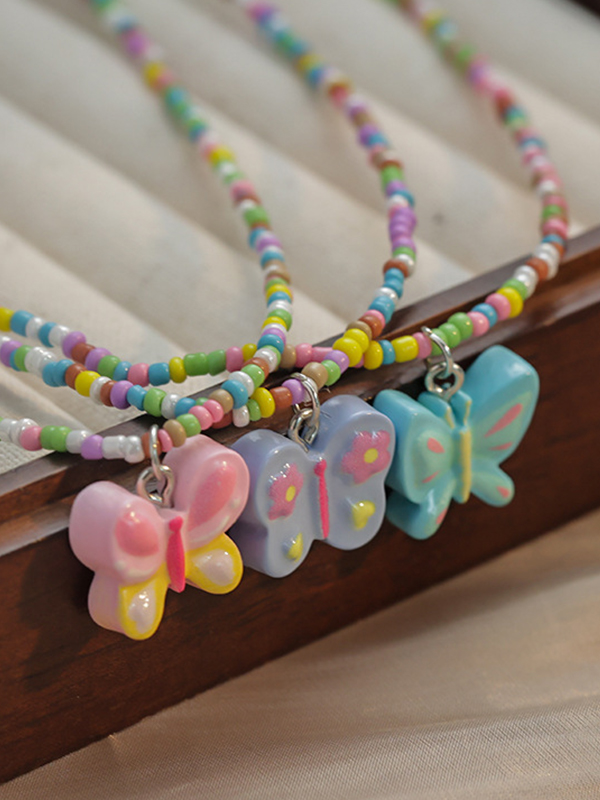 1pc Colorful Beaded Butterfly Necklace