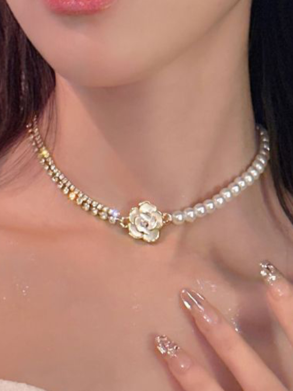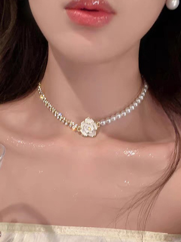 1pc Vintage Camellia Pearl Necklace