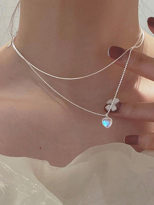 Gradient Heart Charm Double Layered Necklace