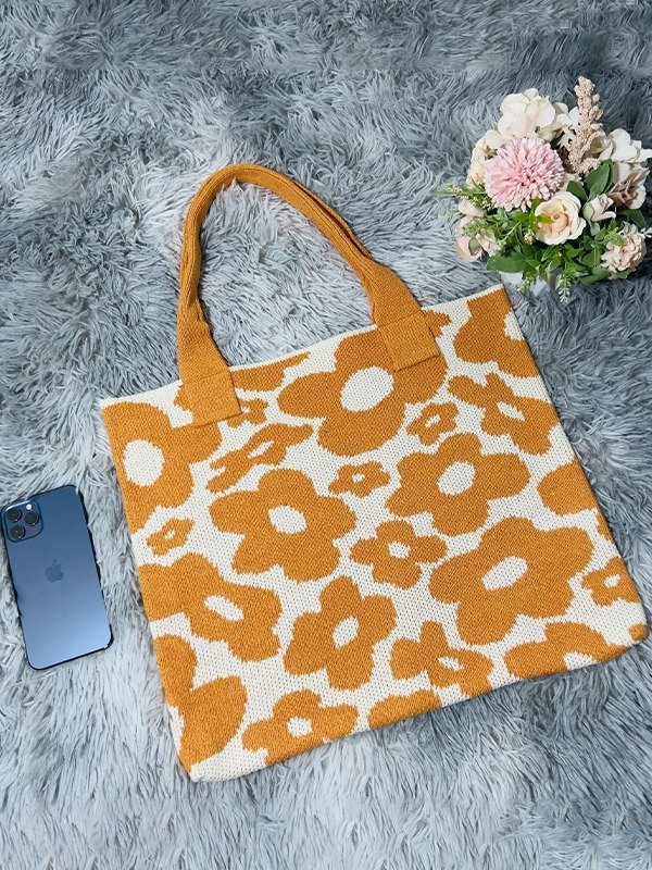 Floral Jacquard Knitted Tote Bag