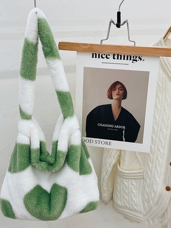 Heart Pattern Fuzzy Shoulder Bag