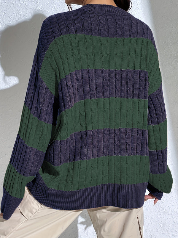 Casual Stripe Print Oversized Long Sleeve Sweaters quantity