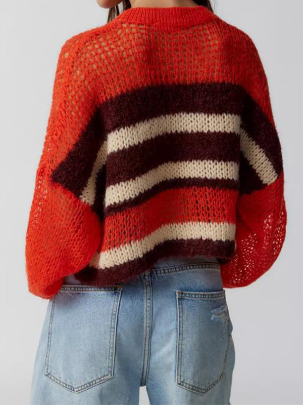 Contrast Color Striped Loose Cropped Sweater