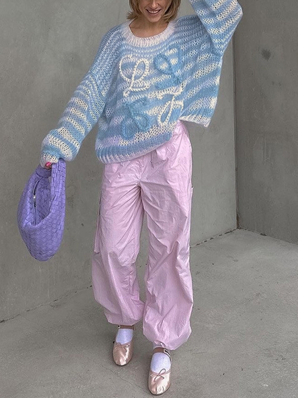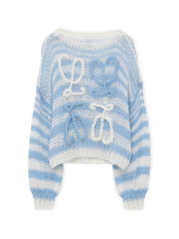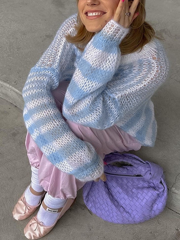Stripe Crochet Baggy Sweater