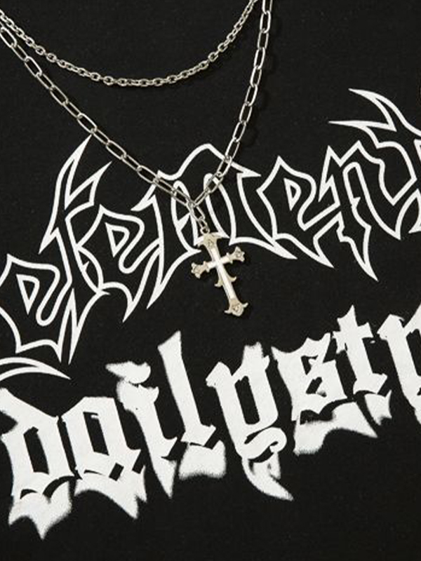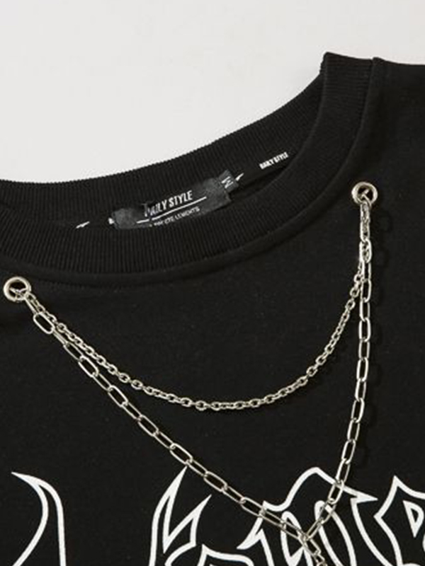 Fake Two Piece Hole Design Chain Loose Dark Print Sweatshirt