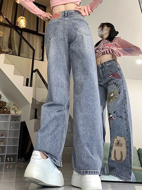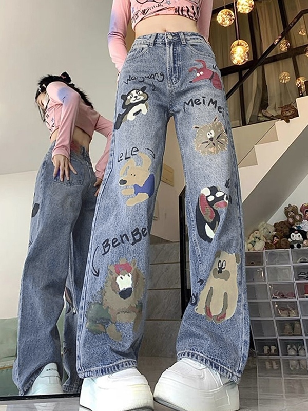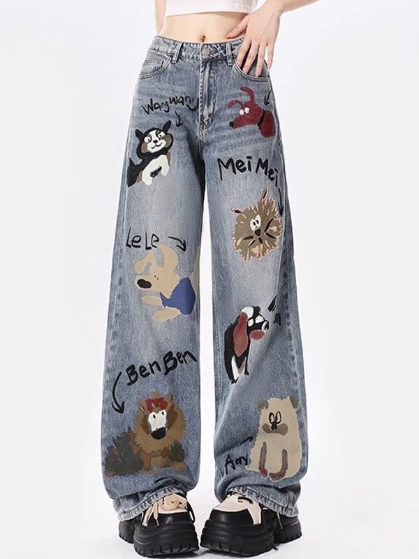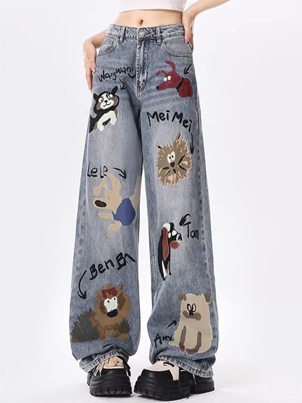 Animal Graffiti Print High Rise Boyrfriend Jeans quantity