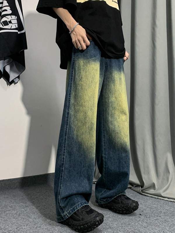 Men’s Vintage Wash Straight Leg Loose Jeans