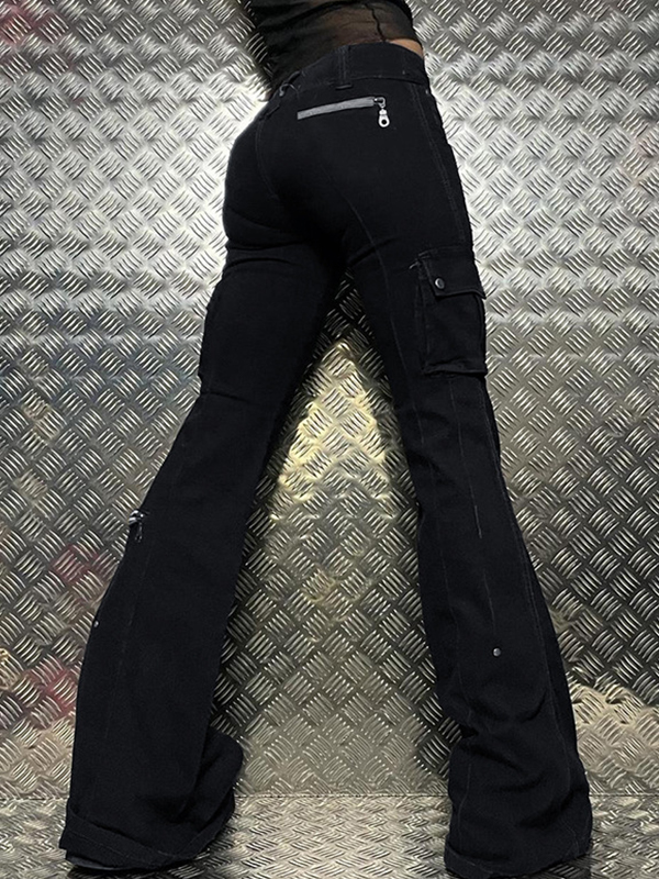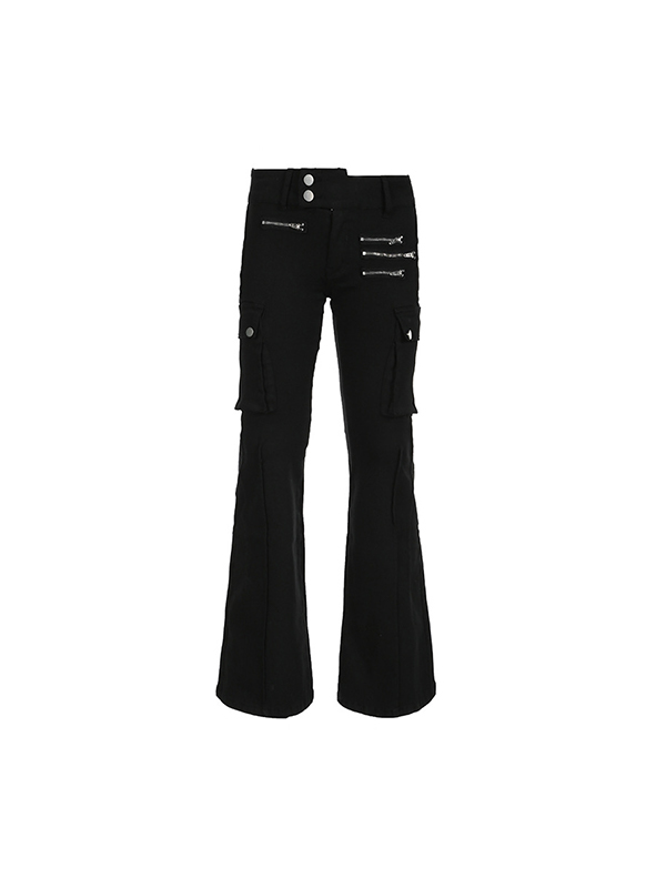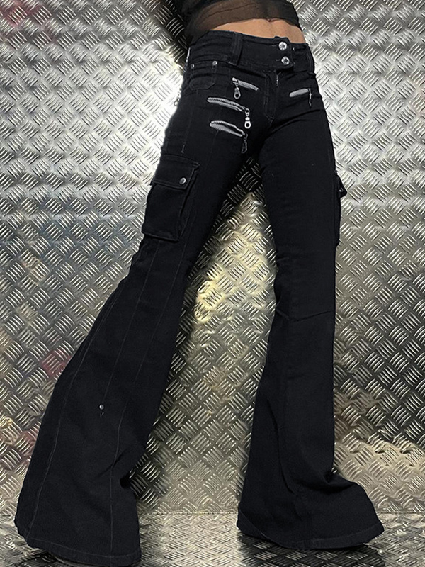Metal Zipper Decoration High Waist Slimming Flare Jeans