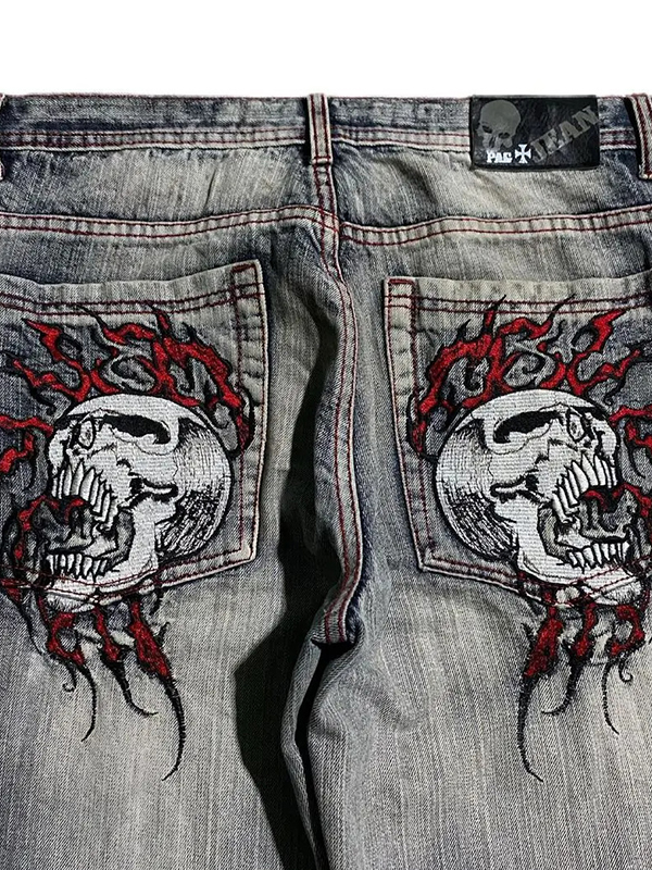 Skull Embroidery Loose Boyfriend Jeans quantity