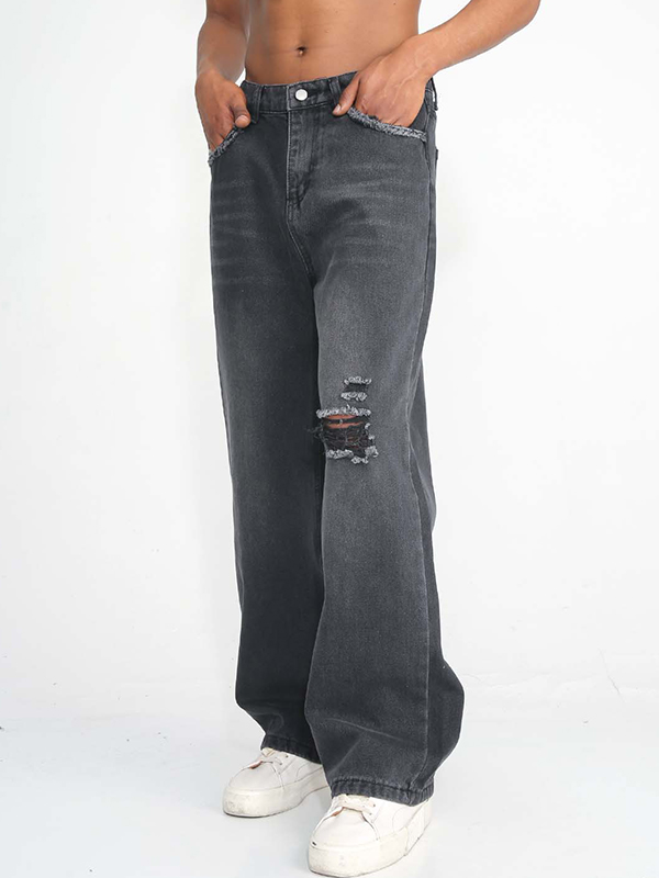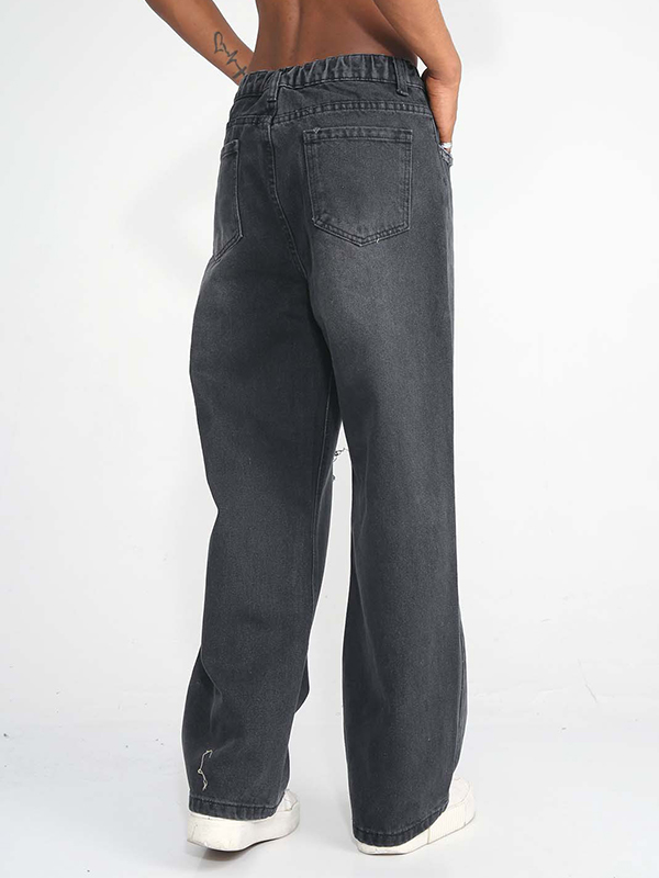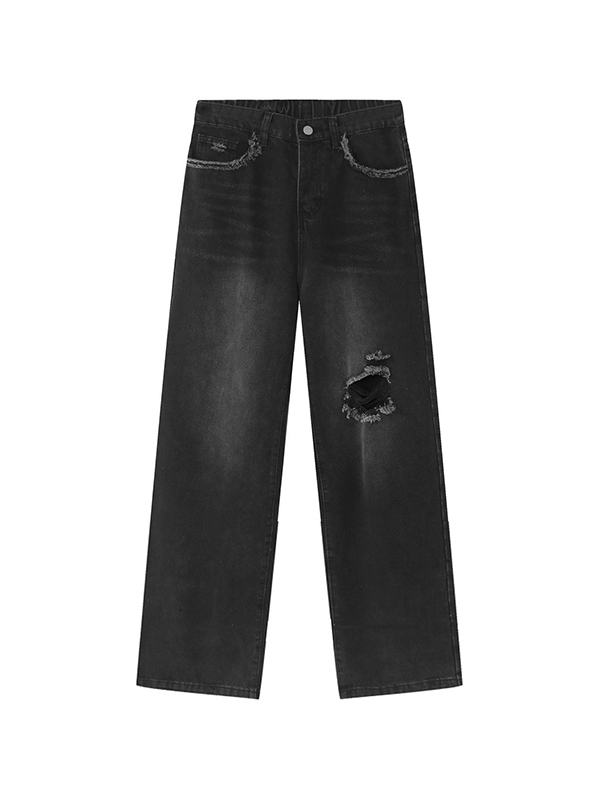 Straight Style American Trendy Hole Ripped Jeans
