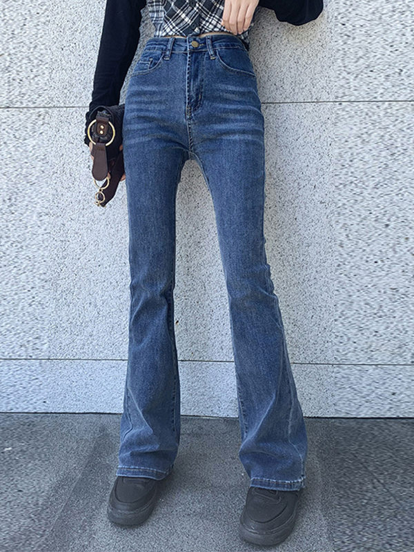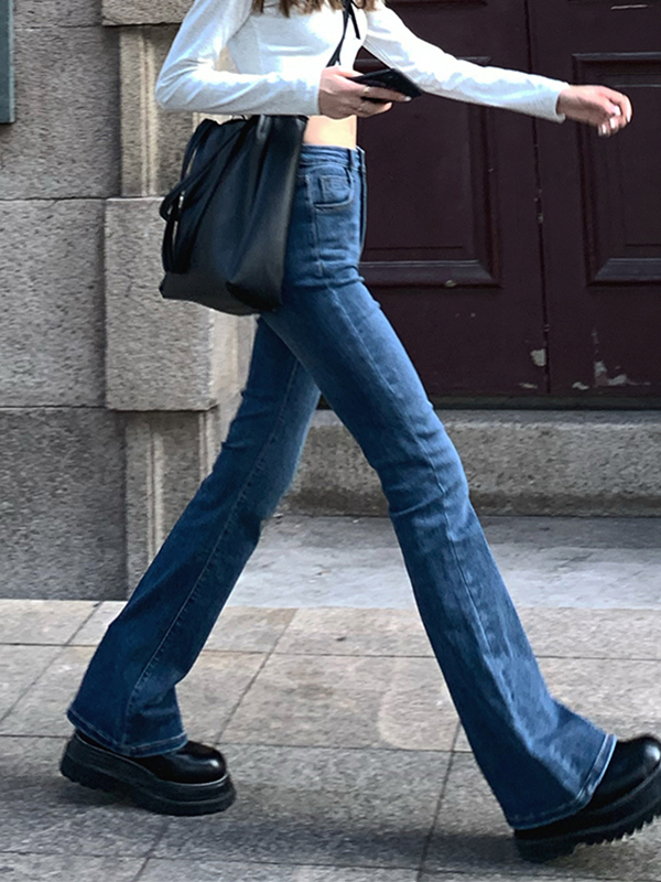 Vintage Blue Wash High Rise Slim Flare Jeans