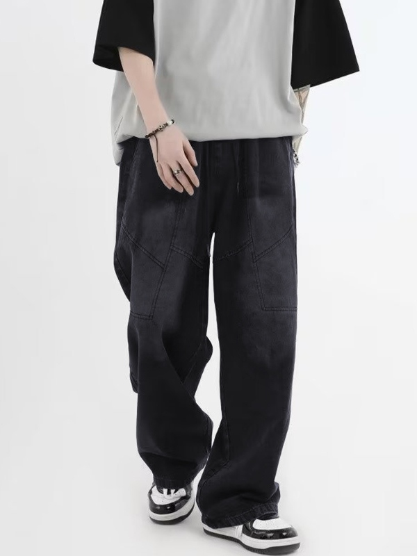 Men’s Ombre Elastic Waist Drawstring Loose Jeans