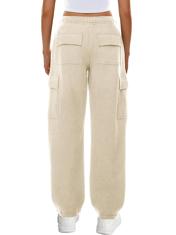 Solid Multi Pocket Elastic Waist Sweatpants