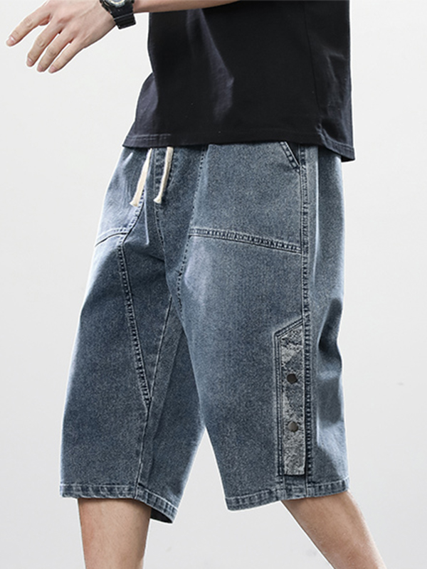Men’s Button Distressed Denim Shorts